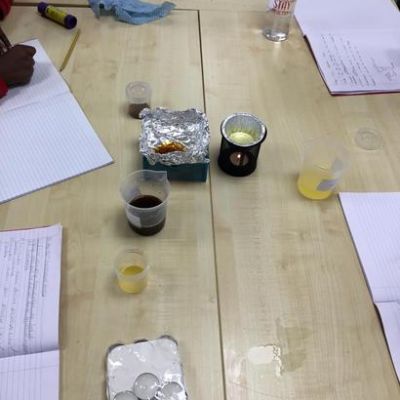 Science - the outcome of this science lesson was to see if mixing materials created new materials.